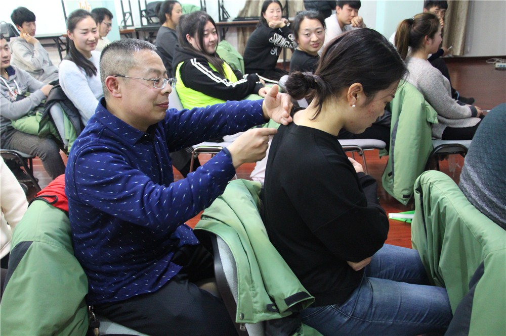 4、扮演盲人的學員必須保持類擬汽車保險杠的姿勢:雙肘彎曲,手掌向外,手的高度與臉齊平;