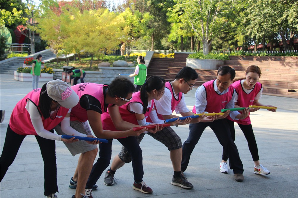 這是一個(gè)團(tuán)隊(duì)合作項(xiàng)目,要求學(xué)員在規(guī)定的時(shí)間內(nèi)把雷區(qū)中間的雷(用盛水杯模擬雷)取出來。
